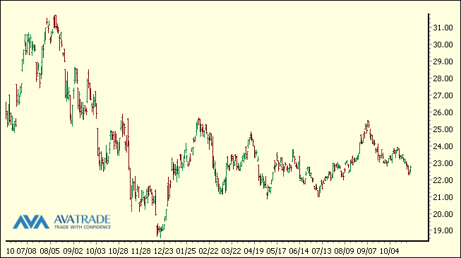 Guldaktiefonden GDX, graf från AvaTradeAct